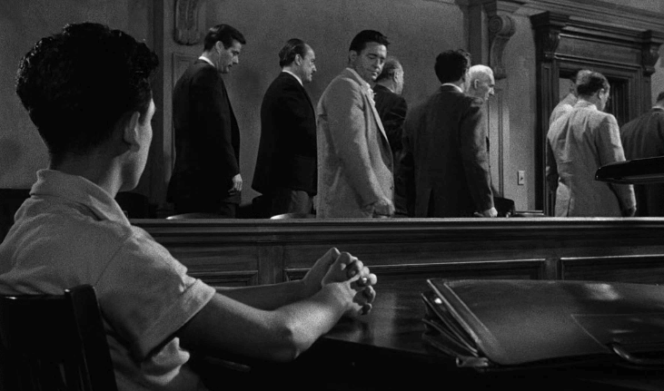 영화는 법정 장면으로 시작이 된다. 일급 살인죄에 대한 길고 복잡한 청문이 있었을 것이고 이어 판사가 말한다. 기소가 된 소년이 있고 예비 배심원을 포함한 배심원이 있고 판사가 있다. 한 사람은 이미 죽었고 이제 한 사람의 목숨이 달린 사건이다. 계획된 살인은 가장 중대한 사건으로 피고의 유죄를 의심할 만한 근거가 있다면 무죄 평결을 내려야 하고 그렇지 않으면 유죄 평결을 내려야 한다고 판사는 말한다. 배심원은 어떤 결정이든 만장일치 평결을 요구받는다. 일단 유죄 평결이 내려지면 재판관의 자비는 없을 것이고 피고인의 사형은 불가피한 것이라고 판사는 못 박는다.